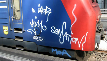 (?)MOA(?) Zurich MainstationSwitzerlandOctober 2002 destroyed Sometimes we miss the one or the other :) Grass- roots say though it was a nice one (incl. character). next train