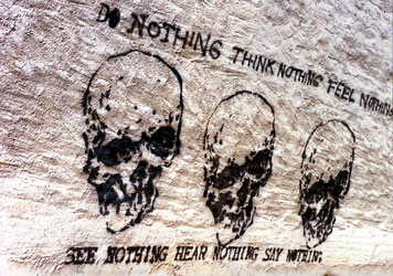 Stencil graffiti Nedis, Dead Ken Plougher Power SägestrasseOberwil, Switzerland1990destroyed