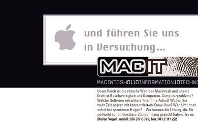 Magazine Ad Mac IT Apple Macintosh Information Technology Lucerne, Switzerland Roger Le Marié Roger Le MariéOctober 2000 see the macIT Logo